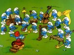 Les Schtroumpfs, personnages de bande dessinée, puis de dessin animé, créés en 1958 par Peyo, ont été traduits dans plus de 25 langues ! Ils feront leur première apparition dans une aventure de Johan et Pirlouit (voir ici son adaptation cinématographique) mais devant l'intérêt fulgurant du public pour ces êtres bleus adorables, Peyo leur consacre rapidement leur propre série. Son auteur nous signe ici une œuvre joyeuse sur un contexte politico-économique utopique d’une société asexuée malgré la présence d’une Schtroumpfette créée par le Mal (Gargamel) qui n'offrira ses faveurs à aucun. Leur société, basée sur la joie de vivre et l’insouciance, est dénuée de toute envie, argent ou pouvoir.