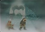 Les deux enfants restés seuls avec leur petit chien, se sentant quelque peu coupables de n'avoir pas écouté les conseils de leur mère, n'ont maintenant pour seul désir que de retrouver cette dernière... (on ne peut que deviner leur culpabilité dans la version française car comme pour quelques autres plans ou séquences, cette VF issue de l'américaine a été amputée de la petite scène suivant l'enlèvement de la mère, celle-ci montrant les enfants, seuls et désolés, auprès du feu éteint dans la yarangue). C'est alors plein de détermination que Jato et Teione, accompagnés de leur petit compagnon canin, partent pour les grands espaces glacés avec pour ultime but de sauver leur maman des griffes glaciales de Dame Blizzard...