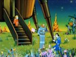 Si la réalisation du Mystère de la troisième planète est somme toute la troisième ou quatrième œuvre en dessins animés réalisée par Roman Kachanov (dont nous vous invitons à lire la fiche que nous lui avons consacrée), et première dans le genre de la science-fiction, ce après trente ans de carrière, dont vingt précédemment consacrés à la direction de films en volumes (et parfois également en tant qu'auteur), on notera que les dix premières années de son activité artistique furent celles d'un animateur de dessins animés et de directeur artistique sur des classiques de la grande période du studio, entre 1948 et 1958. Ainsi, si la réalisation de ce film n'est pas particulièrement véritablement marquée par son empreinte personnelle, sa maitrise technique et certains choix de mise en scène offre une vision originale du roman dans une forme fort agréable. Évidemment, la musique d'Aleksandr Zatsepin, compositeur au registre très varié, apporte également beaucoup au film en créant une véritable atmosphère à la fois envoutante – telle celle qu'il produisit en 1975, également dans le domaine du fantastique, pour une adaptation soviétique de Vingt Mille Lieues sous les mers avec un capitaine Nemo interprété par Vladislav Dvorzhetsky, comédien qui joua notamment le rôle d'Henri Berton dans le Solaris de Tarkovski –, avec au final des sonorités et des impulsions organiques qui se mêlent efficacement aux divers paysages que l'on découvre lors de ce voyage. On notera également, à propos de la forme artistique que l'on doit en partie à Natalia Orlova, que les couleurs quelque peu psychédéliques sur la nature de la troisième planète font parfois échos à quelques travaux de jungle du Douanier Rousseau, et que la planète Bluk présente en sa cité quelques paysages évoquant des visions proches de celles de Dali. Petit détail amusant – du moins si l'on veut – concernant cette artiste à qui Roman Kachanov confiera l'année suivante le même poste pour Volshebnoe Lekarstvo (La médecine magique) qu'il réalisa : Natalia Orlova mis en scène en 2004, parmi ses dernirs travaux, Kashtanka d'après le conte éponyme d'Anton Tchekhov, ce alors que dans l'un des premiers films d'animation sur lesquels œuvra en animateur Roman Kachanov – Fedya Zajcev, réalisé par les sœurs Brumberg en 1948 – apparaît dans les mains d'un personnage, un livre sur ce même conte.