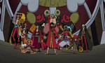 On découvre pour la première fois la nouvelle apparence des membres de la Marine après la fameuse ellipse de 2 ans séparant les épisodes 516 et 517. On note cependant que Koby et Hermep étaient déjà apparus avec leur nouveau look dans le téléfilm Episode of Luffy . On y découvre aussi les nouveaux quartiers de la marine, étrangement différents de ceux du manga.