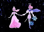 Alors que l’on fêtait son premier anniversaire au château de ses parents, la vilaine reine des souris (dotée de trois têtes !), fit intrusion au palais avec son fils, qui était tout aussi laid qu’elle et qui était absolument insupportable. Tous deux semblaient être venus offrir un cadeau au petit prince mais il s’avéra vite que le paquet qu’ils avaient remis aux souverains était vide ! La reine des souris était enchantée de son tour mais ce n’était guère le cas du roi qui voulut la chasser par la force. Celle-ci refusa de partir et transforma les soldats du roi en statue de glace avant de dévorer goulûment l’épée du roi ! Afin de se débarrasser de l’indésirable, le roi partit chercher des explosifs. Dans le même temps, le prince des souris s’en prit à la gentille reine, si bien que le fils de celle-ci lui donna un coup sur la tête depuis son berceau. Pour venger son fils, la reine des souris transforma le petit prince en jouet de bois au moment où le roi revint. Mais il intervint trop tard et tandis qu’il fit disparaître la méchante souveraine, le sort fut jeté et toutes les personnes présentes dans la salle furent par ailleurs emprisonnées dans la glace. Seul le prince des souris parvint à s’échapper...