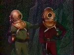 Le céphalopode quant à lui, quoique muni de bras et tentacules, remporte quelque peu la palme des effets spéciaux sans effet justement de par la matière inerte qui le compose tel un jouet de plastique lorsqu'on le voit en entier (les dialogues évoquent ici un calmar mais il ressemble beaucoup plus à une pieuvre). Mais si l'on veut bien se prêter au jeu, on trouvera un peu plus « réalistes » les scènes où sont montrées « grandeur nature » ses tentacules alors que les hommes tentent de repousser ses attaques sur le pont du Nautilus. A propos de ce dernier, celui-ci est représenté sous la forme de dessins directement extraits des gravures du roman lorsqu'il est à la surface (de même que la timonerie vu de l'intérieur). Le sous-marin apparait également au travers d'un véritable modèle réduit en trois dimensions respectant la forme d'origine avec de menus variations conférant au navire, de par le matériau utilisé, un aspect lui donnant une simple mais néanmoins belle apparence. On remarquera également la qualité des scaphandres (casques et systèmes respiratoires), mais aussi le peu d'éléments de décors accompagnant les illustrations de fond (une table, une nature morte accrochée sur un mur, une armure médiévale...), celles-ci se suffisant toutefois à elle-même. Quant aux scènes de déroulant dans les profondeurs sous-marines, c'est tout simplement au travers d'un aquarium qu'elles sont filmées comme en d'autres adaptations télévisées du même roman tel le téléfilm soviétique Kapitan Nemo réalisé en 1975 par Vasili Levin et Edgar Smirnov ou celui tchécoslovaque Dvacet tisic mil pod morem réalisé en 1980 par Pavel Kraus (téléfilms inédits en France).