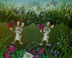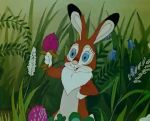 En 1982, si l'âge d'or du studio Soyuzmultfilm relève alors du passé selon certaines perspectives, les productions réalisées après cette période, quoique semblant moins imposantes à quelques égards, offre à admirer, toujours en une intense et riche production, une incontestable virtuosité créatrice et ce avec moult expériences tout autant dans les domaines de la narration et des idées que dans ceux du graphisme et de l'animation, même pour des œuvres semblant mineures. C'est ainsi le cas du Lapin Jouet qui, sous ses dehors légers d'une histoire très simple ornée de dessins au style enfantin (proche d'illustrations de la littérature jeunesse considérée comme populaire), conserve encore un peu du monde animalier touchant au naturalisme dans l'animation soviétique des années 50/60. Aussi, si les lapins sont représentés avec de grands yeux telle une descendance de Panpan, l'ami du jeune faon dans Bambi de Disney, la nature qui les entoure offre à voir des décors raffinés où, feuilles et pétales fourmillent à l'image en de doux paysages. A propos de Disney, un peu de son univers est d'ailleurs « présent » dans une autre œuvre de l'écrivain et scénariste Michael Lipskerov (1939-) à qui l'on doit ce Lapin Jouet, à savoir dans la série de court métrage Samij Malenkij Gnom au travers de quelques nains issus du Blanche-Neige disneyien apparaissant dans un album d'images du petit gnome, héros de cette série aux jolis et tendres volumes.