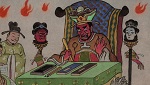 Keiichi Hara désacralise aussi quelque peu Katsushika Hokusai (Tetsuzo) en le présentant comme un homme bougon, qui délaisse fréquemment son travail pour se saouler. Certaines de ses estampes les plus célèbres sont tout de même montrées à l’écran, notamment la célèbre "Grande Vague de Kanagawa" (qui fait partie de sa série des "trente-six vues du mont Fuji").