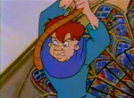 Un jour il aperçoit une troupe de tsiganes arrivée récemment en ville et remarque très vite la belle Esméralda. Cette dernière est venue avec son frère François, sa grand-mère Angelica et leur chèvre Djali en vivant de quelques pièces en échange de spectacles de rue. Mais alors que la maréchaussée s'apprêtait à les arrêter, Quasimodo vainc sa peur des hommes et tente de sauver les trois bohémiens pour au final se retrouver seul emprisonné. Dans sa cellule, il surprend une conversation sur un complot qui vise à assassiner le roi Louis XI. Délivré par ses nouveaux amis, Esméralda et François, il apprend très vite que le commanditaire du futur meurtre n'est autre que Frollo. Celui-ci est un magicien démoniaque qui peut donner vie aux méchantes gargouilles et il sera notamment aidé par son chien maladroit mais utile, Azaroth.