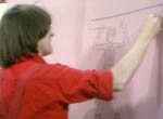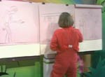 Devant un grand panneau blanc, le dessinateur Cabu débute un dessin mettant en scène un de ses personnages (le grand Duduche ou même sa célèbre caricature de Dorothée) ou toute autre création... mais ne le termine pas.