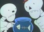 La forme donnée aux squelettes est, du moins peut-on le voir ainsi dans sa parodie, une nuance pour atténuer quelque peu le côté effrayant de la charpente humaine. Ainsi les arrondis, les os moins espacés ou les petits points noirs remplaçant les orbites vides (et pour le nez, un petit rond pour le petit, et un petit triangle pour le grand), font de ces squelettes, des personnages visuellement sympathiques et amusants. On notera également que le petit squelette toujours présenté comme tel semble avoir pris quelques centimètres par rapport à son original de papier. La forme squelettique s'insinue même dans la musique puisque celle-ci est interprétée par un instrument pouvant évoquer à l'esprit la sonorité osseuse, à savoir un xylophone.