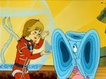 Si la réalisation du Mystère de la troisième planète est somme toute la troisième ou quatrième œuvre en dessins animés réalisée par Roman Kachanov (dont nous vous invitons à lire la fiche que nous lui avons consacrée), et première dans le genre de la science-fiction, ce après trente ans de carrière, dont vingt précédemment consacrés à la direction de films en volumes (et parfois également en tant qu'auteur), on notera que les dix premières années de son activité artistique furent celles d'un animateur de dessins animés et de directeur artistique sur des classiques de la grande période du studio, entre 1948 et 1958. Ainsi, si la réalisation de ce film n'est pas particulièrement véritablement marquée par son empreinte personnelle, sa maitrise technique et certains choix de mise en scène offre une vision originale du roman dans une forme fort agréable. Évidemment, la musique d'Aleksandr Zatsepin, compositeur au registre très varié, apporte également beaucoup au film en créant une véritable atmosphère à la fois envoutante – telle celle qu'il produisit en 1975, également dans le domaine du fantastique, pour une adaptation soviétique de Vingt Mille Lieues sous les mers avec un capitaine Nemo interprété par Vladislav Dvorzhetsky, comédien qui joua notamment le rôle d'Henri Berton dans le Solaris de Tarkovski –, avec au final des sonorités et des impulsions organiques qui se mêlent efficacement aux divers paysages que l'on découvre lors de ce voyage. On notera également, à propos de la forme artistique que l'on doit en partie à Natalia Orlova, que les couleurs quelque peu psychédéliques sur la nature de la troisième planète font parfois échos à quelques travaux de jungle du Douanier Rousseau, et que la planète Bluk présente en sa cité quelques paysages évoquant des visions proches de celles de Dali. Petit détail amusant – du moins si l'on veut – concernant cette artiste à qui Roman Kachanov confiera l'année suivante le même poste pour Volshebnoe Lekarstvo (La médecine magique) qu'il réalisa : Natalia Orlova mis en scène en 2004, parmi ses dernirs travaux, Kashtanka d'après le conte éponyme d'Anton Tchekhov, ce alors que dans l'un des premiers films d'animation sur lesquels œuvra en animateur Roman Kachanov – Fedya Zajcev, réalisé par les sœurs Brumberg en 1948 – apparaît dans les mains d'un personnage, un livre sur ce même conte.